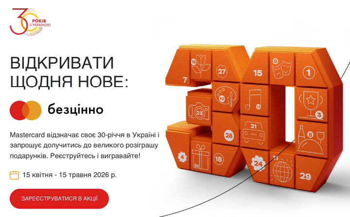 Великий розіграш подарунків від Mastercard! З 15 квітня до 15 травня 2026 року беріть участь в акції від Mastercard Більше — реєструйтеся та долучайтеся до великого розіграшу подарунків. Щоб взяти участь в акції:1. Зареєструйте картку Mastercard на сайті – для оплати покупок або […]