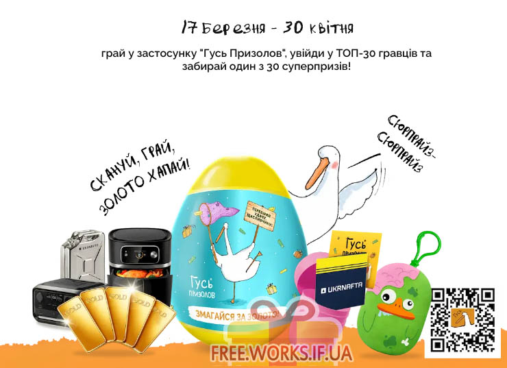 Акція «Гусь Призолов» — подарунки та справжні гроші всередині шоколадних яєць! З 17 березня до 30 квітня 2026 року беріть участь в акції «Гусь Призолов» та отримуйте гарантовані подарунки та шанс виграти суперпризи! Умови акції “Гусь призолов”:1. Купуйте яйце “Гусь […]