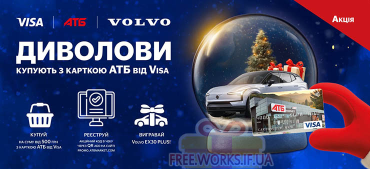 З 10 грудня 2025 року по 11 січня 2026 року беріть участь в акції «Диволови» від АТБ і вигравайте електрокар Volvo EX30 Plus!