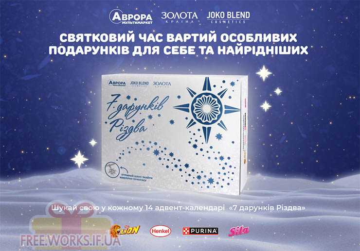 З 2 по 31 грудня 2025 року обирайте святкові адвент-календарі «7 дарунків Різдва» в Аврорі та знаходьте всередині адвента набір засобів Joko Blend, а в сьомій комірці — срібну прикрасу або сертифікат від ювелірної мережі «Золота Країна».