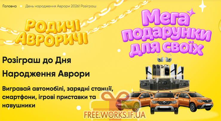 З 2 по 8 березня 2026 року беріть участь в акції від Аврора та вигравайте автомобілі, зарядні станції, смартфони, ігрові приставки та навушники!