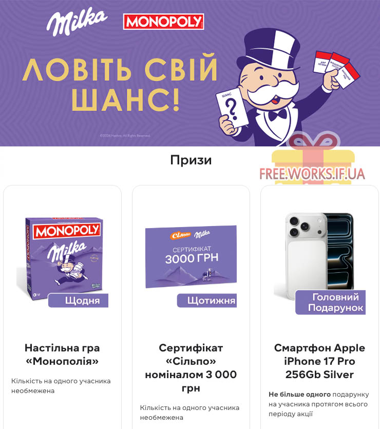 Головний приз: Смартфон Apple iPhone 17 Pro 256Gb Silver — 10 шт.