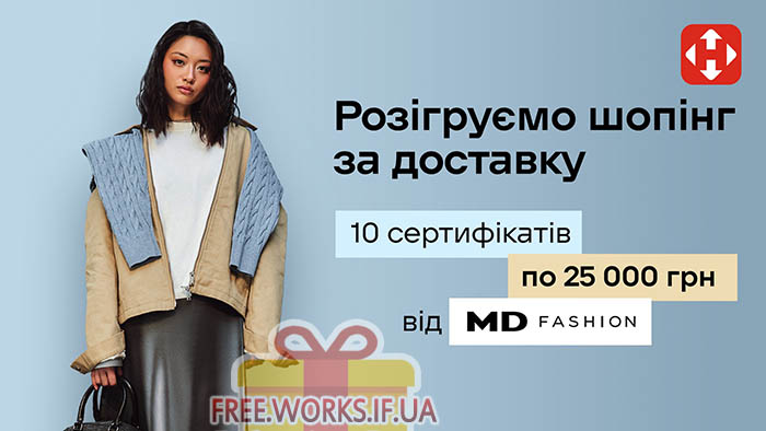 Призовий фонд акції: сертифікат від мережі MD-Fashion номіналом 25 000 гривень – 10 шт.