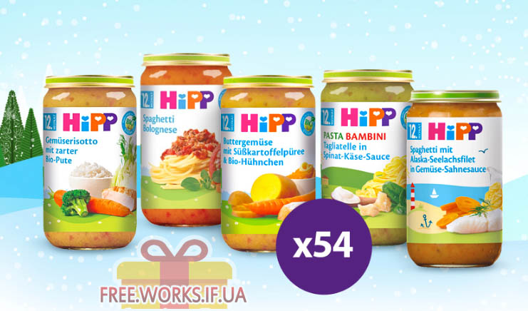 Продукція на тестування: 54 набори HiPP, у кожен набір входять: