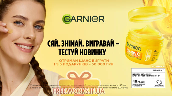 З 1 по 15 березня 2026 року беріть участь у тестуванні від Garnier: отримайте крем-сорбет Garnier у подарунок та вигравайте 1 із 5 грошових призів — 50 000 гривень!